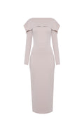 - Fitted knitted dress with a wide fold-over collar and a zip closure